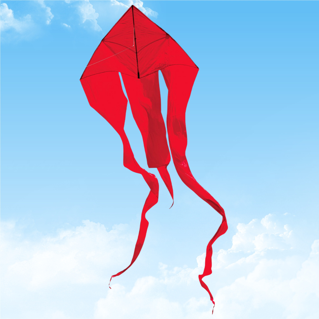 This 77" Wave Delta Kite is truly a sight to see in the sky! Despite its large size, it takes flight effortlessly and glides smoothly on the breeze. Its flowing tails create a mesmerizing effect as they dance in the wind. Bold and vibrant, this solid-color kite brings fun for the entire family!