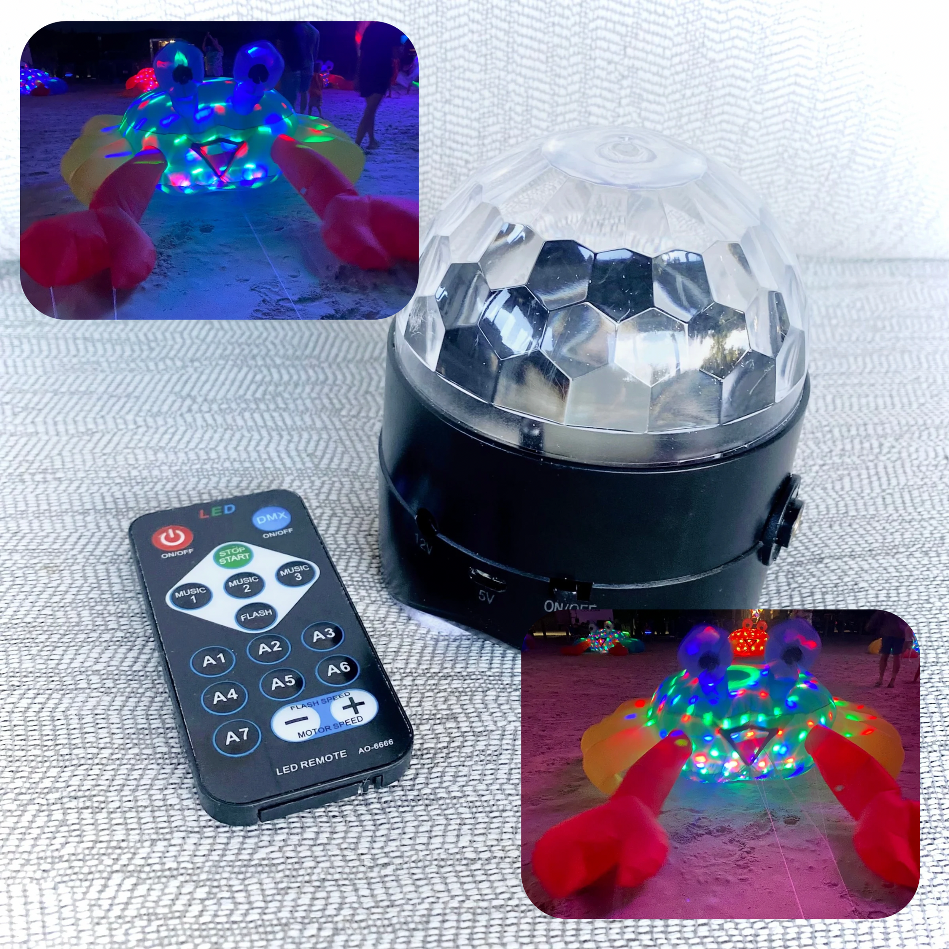 We love using this battery-powered disco light to bring our 3m Billy the Bouncing Crabs to life after dark! Just switch it on, pop it inside through the crab’s mouth, and watch as your daytime display transforms into a glowing, disco-dancing crab that steals the show at night!
