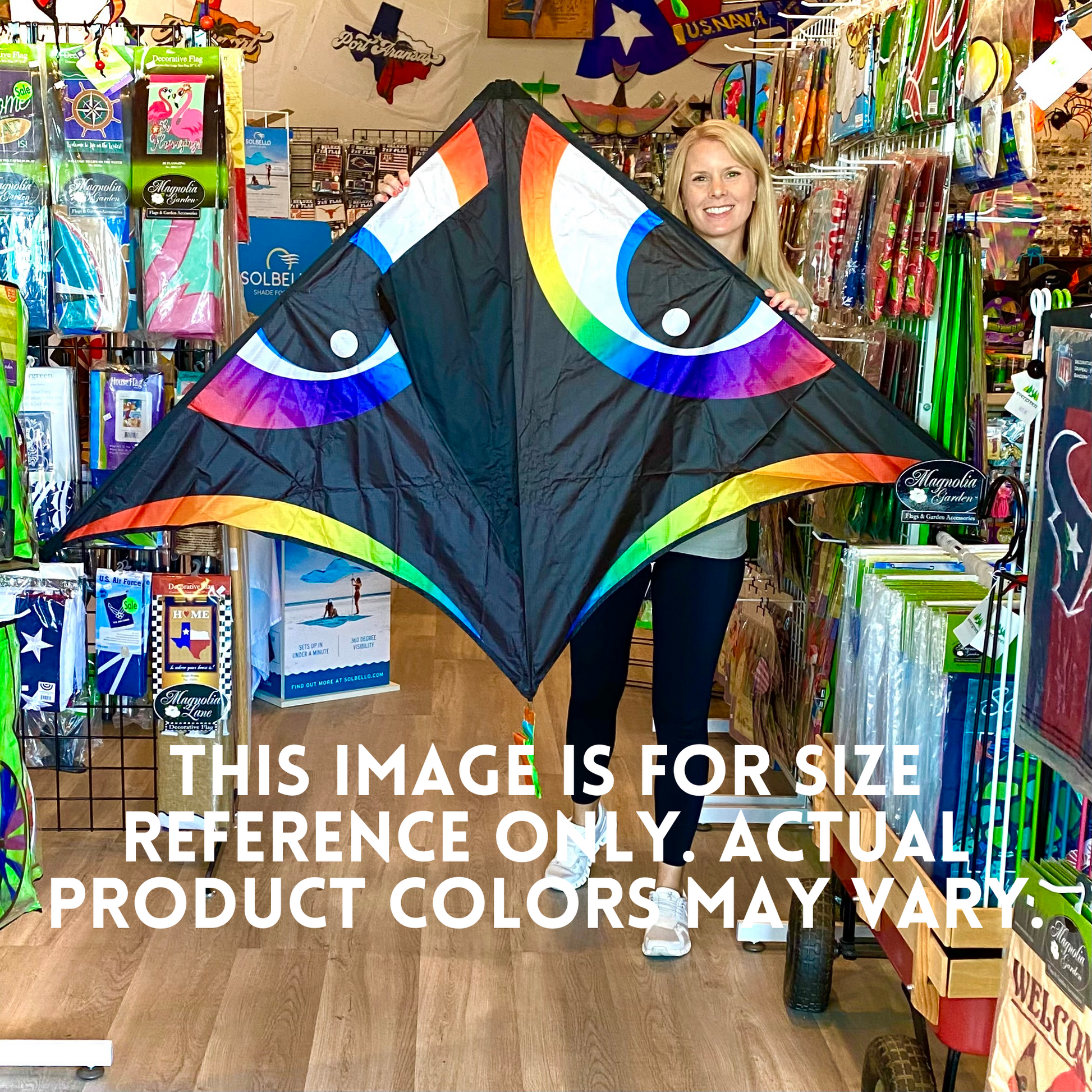 Take flight like a "Manu"—the Polynesian word for bird—with this eye-catching Manu Delta Kite! This 72-inch beauty invites high-flying fun and features edge loops for adding extra streamers (sold separately), letting you make your Manu even more magnificent!