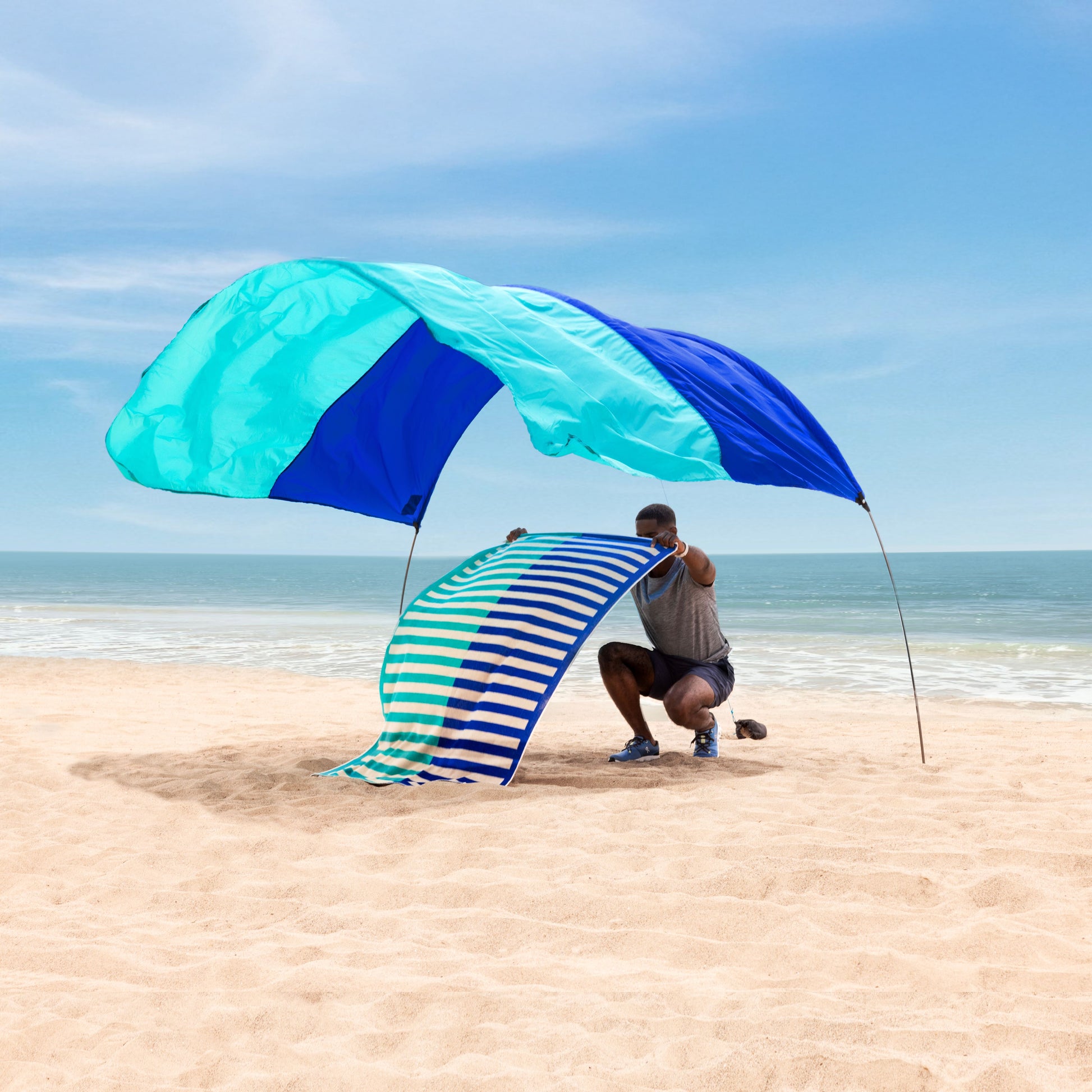 This handy accessory attaches to the corners of your Shibumi Shade® canopy, anchoring each side with sandbags to create a tent-like shape. Best for those times on the beach when there's barely a breeze, the Wind Assist™ helps provide shade even in tricky wind conditions. Compatible with all Shibumi Shades.