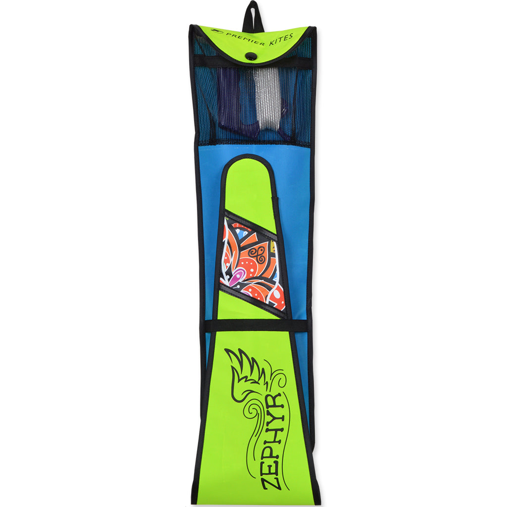 The Zephyr kites combine bold, vibrant contemporary designs with a large, tried-and-true flying platform. Each kite comes with a versatile case for easy transport, whether fully or partially broken down. Big, stable, and a delight to fly, these kites can carry small windsocks, spinners, and other accessories along the line with ease.